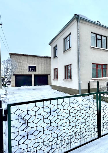 Ūkiniam pastate 3 kambariai, 2 garažai, rūsys.