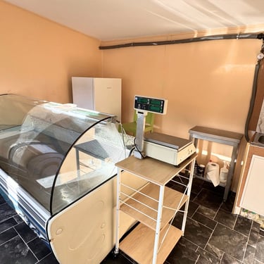 Maisto prekyba (Esama būklė): Patalpos pilnai paruoštos šviežio maisto prekybai (atitinka VMVT reikalavimus dėl vandentiekio ir kanalizacijos).